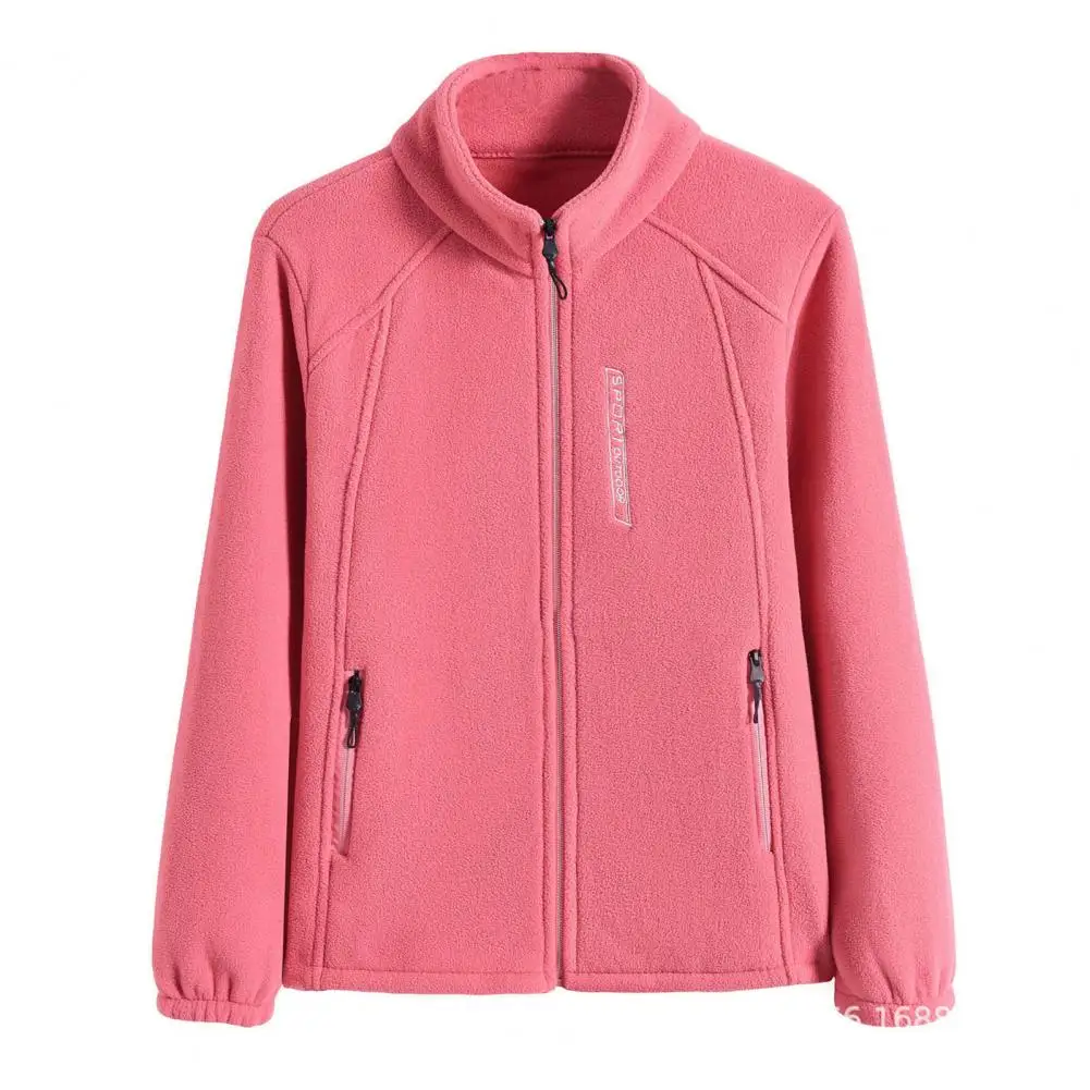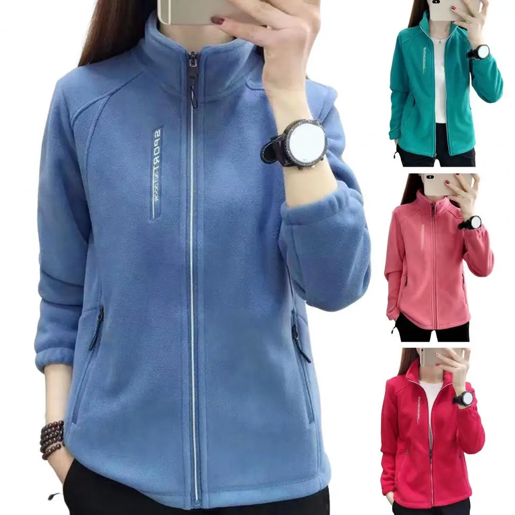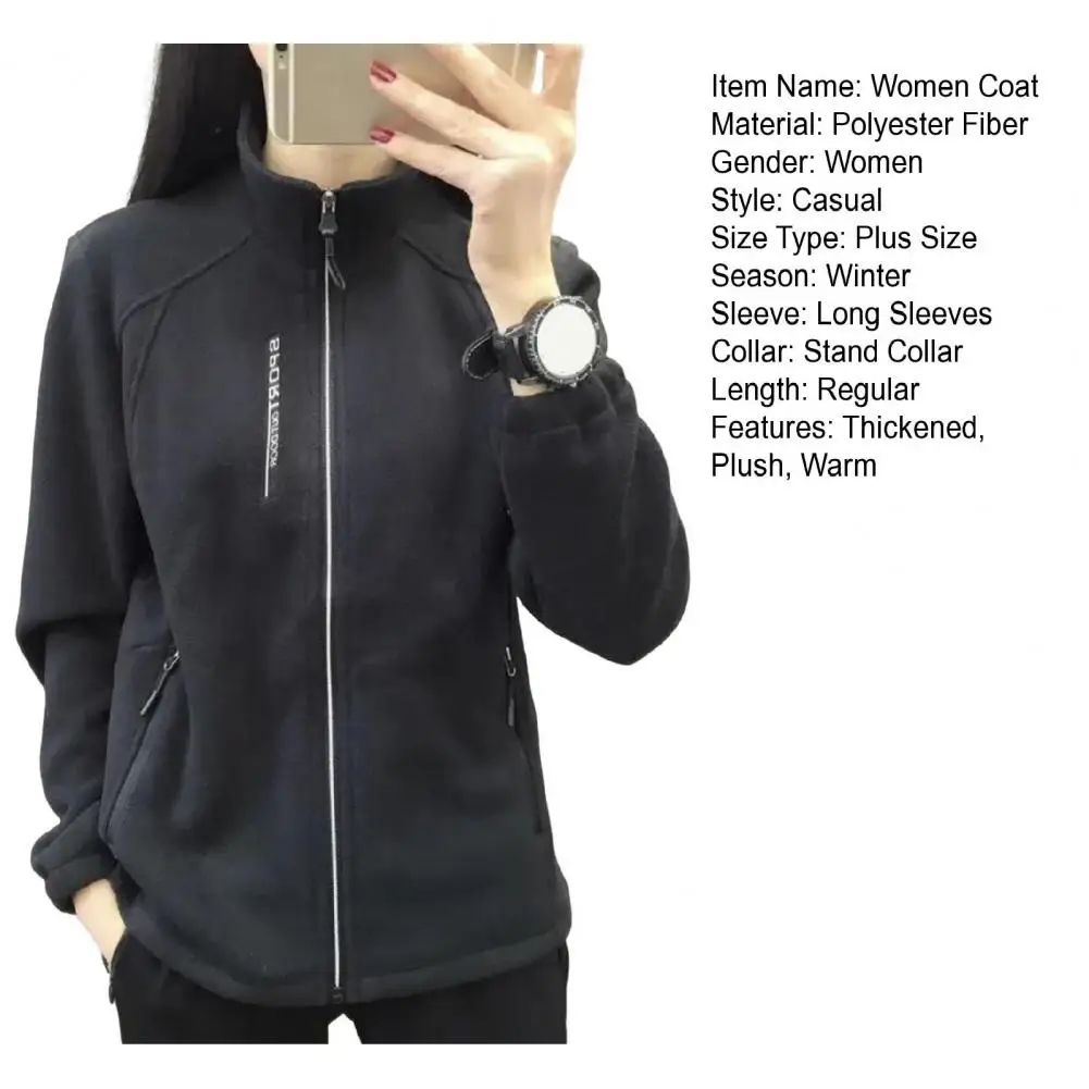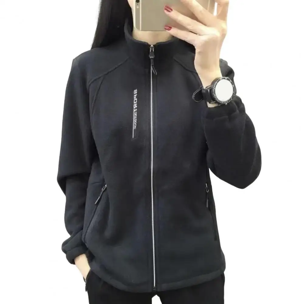 Damen-Fleecejacke, Damenmantel, warm, stilvoll, Damen-Polarfleece-Mantel mit Stehkragen, Reißverschlusstaschen für Übungen