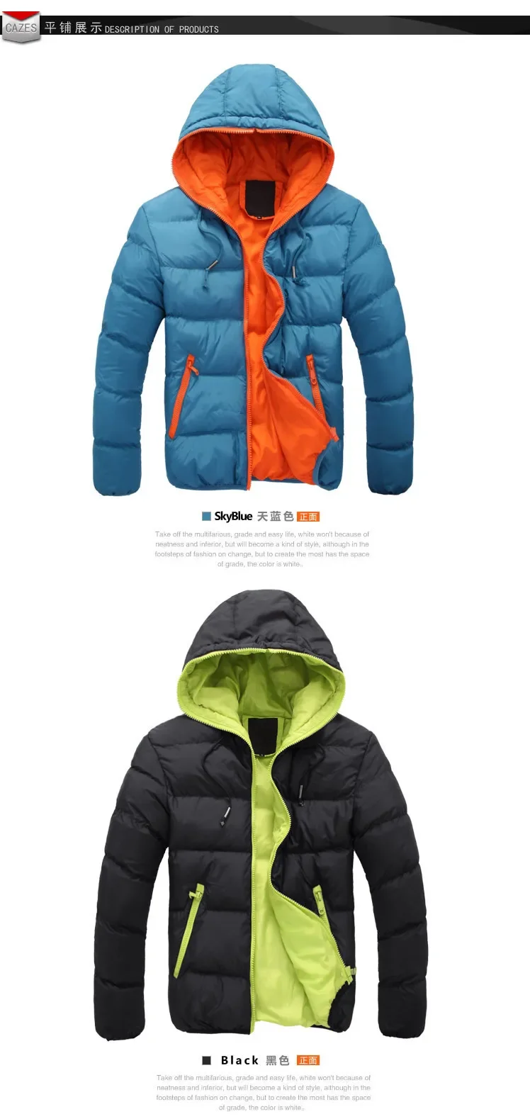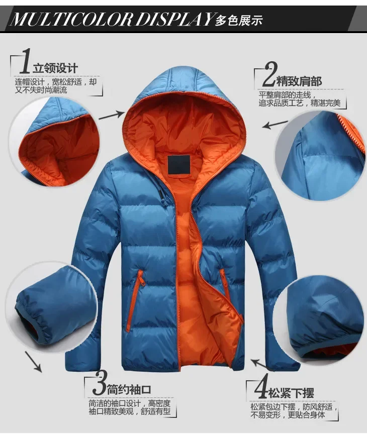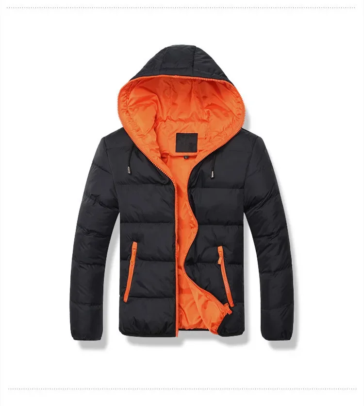 Europäische und amerikanische Herren neue Herbst-und Winter mode einfarbige Kapuze mit Reiß verschluss, warmer, mit Baumwolle gepolsterter Jacken mantel mit Kapuze.