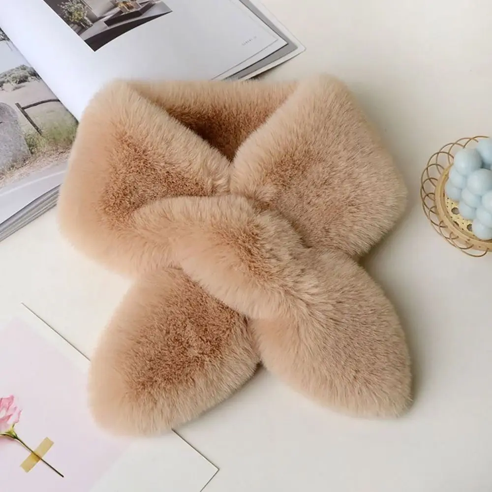 Frauen Winter Warm Verdicken Kreuz Kragen Schal Einfarbig Faux Kaninchen Fell Plüsch Elegante Schal Schals Halstuch Wrap Hals Wärmer