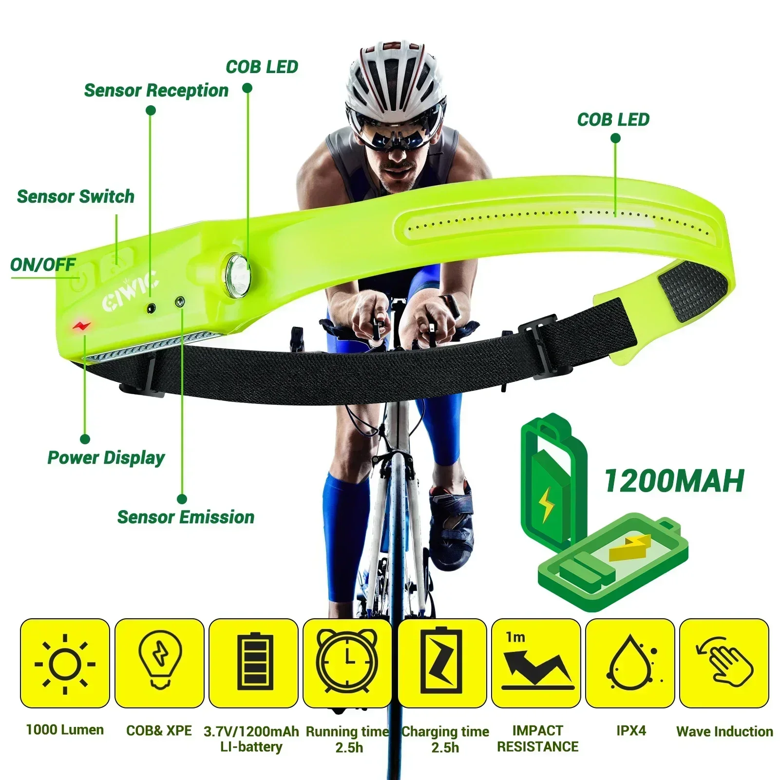 LED-Stirnlampe, wiederaufladbar, 3 Modi, Beleuchtung, Scheinwerfer, Taschenlampe, eingebauter Akku, Lauflicht für Outdoor-Camping, Notfalllampe