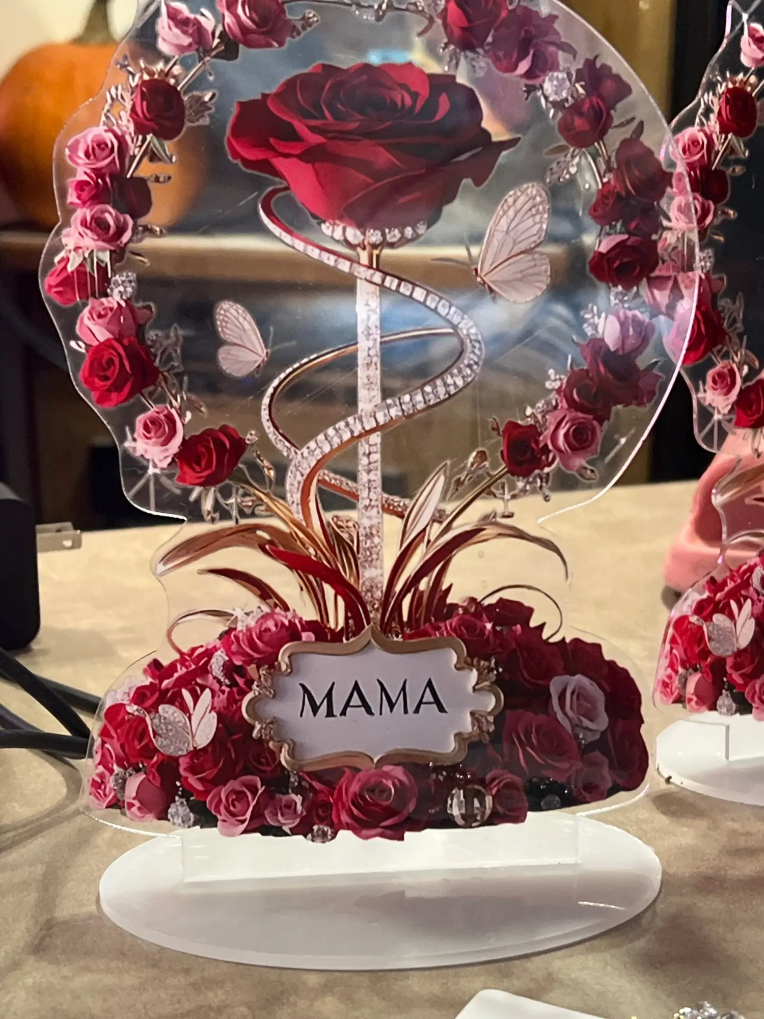 2D-Acryl-Ornament, rote Rose, Mutter-Muster, Rosen, Mutter, flach, elegant, Schreibtisch-Dekoration, festliche Geschenke für Kinder und Mutter