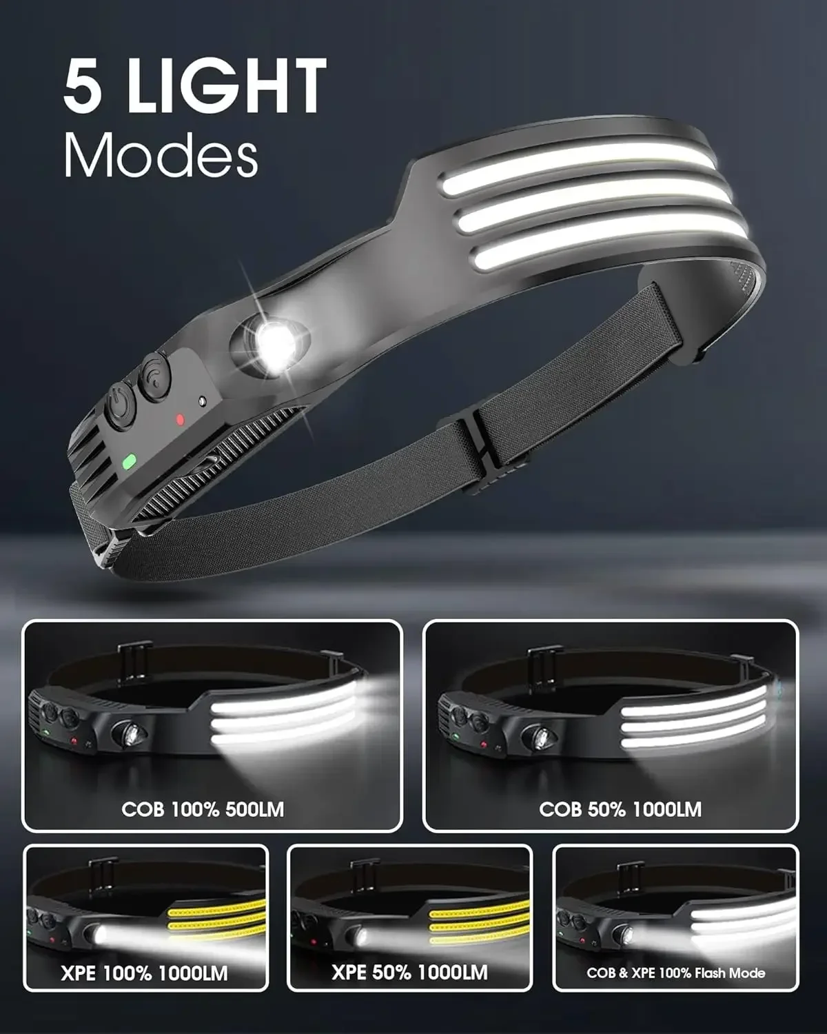 Leuchtmittel: Hauptlicht COB + Zusatzlicht P30 Ladespannung/-strom: 5 V/0,5 A