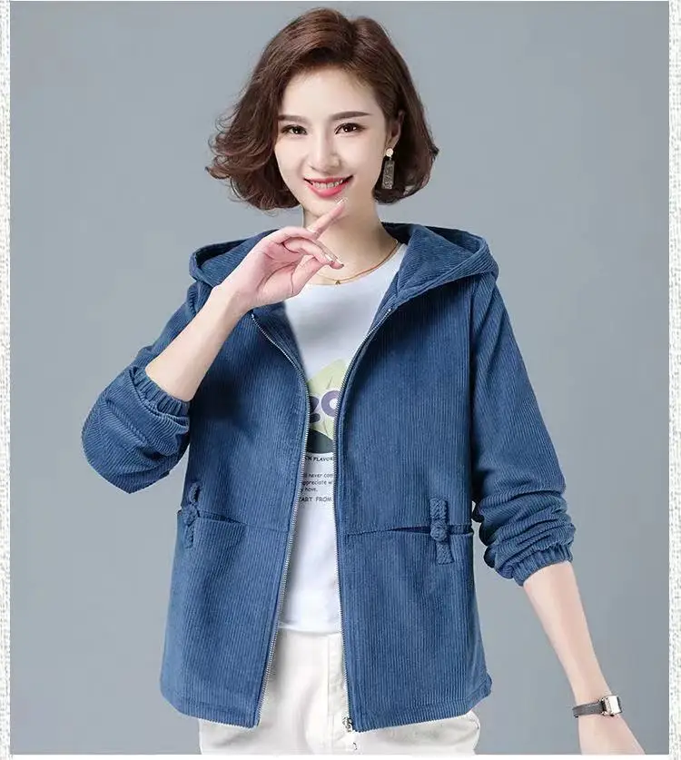 Damen jacken Mantel Herbst/Winter Cord einfarbig Kapuze Langarm Reiß verschluss Mode Damen Tops Drops hipping Sffs5026