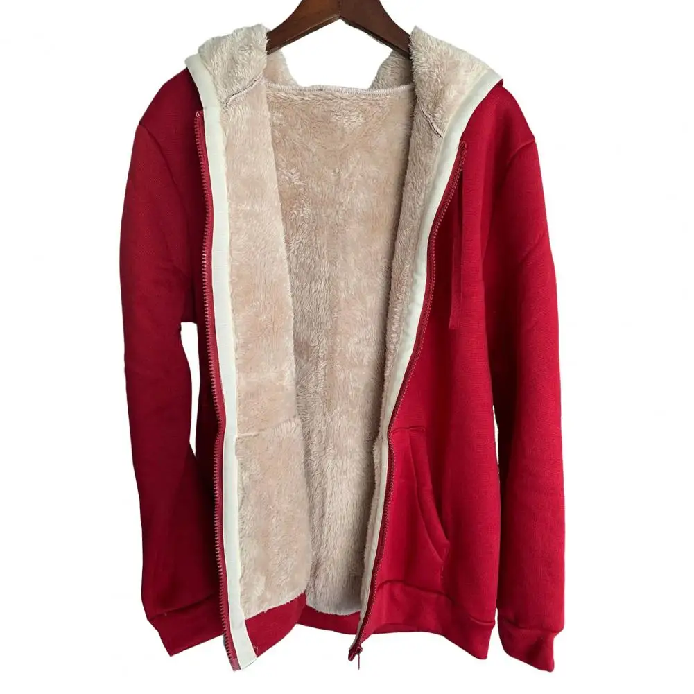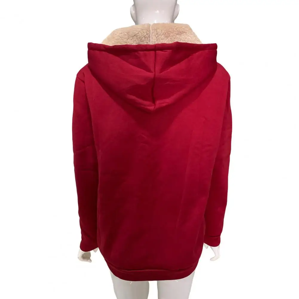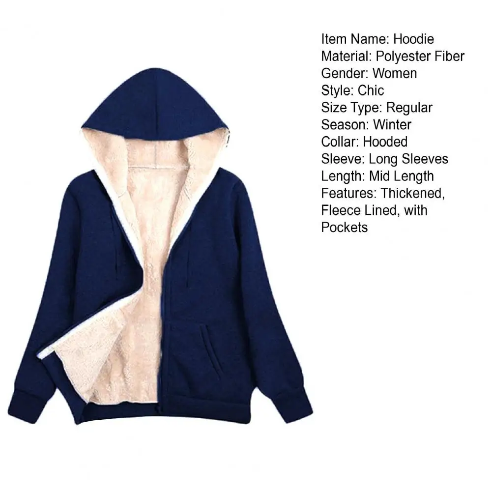 Lightweight Jacket Cozy Fleece-lined Winter Hoodie with Pockets for Women Stylish Zip-up Coat with Drawstring Hem Elastic Cuffs