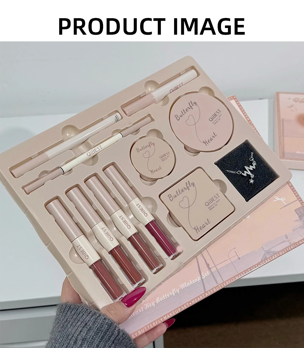 Make-up-Geschenkbox, Schmetterlingsschleife, Herz, begrenzter Lippenstift, Puder, Rouge, Lidschatten, Make-up-Geschenkbox-Set und Halsketten-Geschenke für Frauen