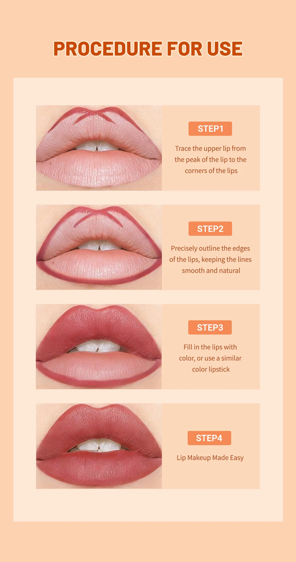 Umreißen Sie die Lippenkanten präzise und halten Sie die Linien glatt und natürlich.