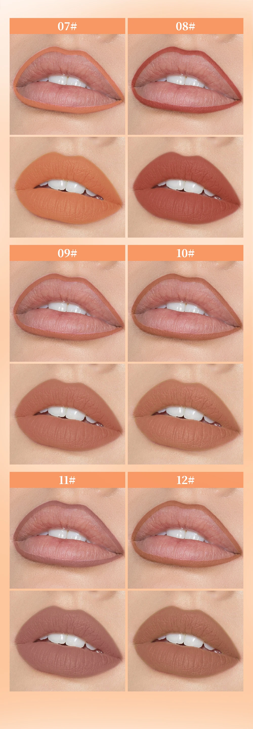 QIBEST 12 Teile/satz Matte Lip Liner Bleistift Lip Umriss Konturierung Dauerhafte Lippenstift Hohe Pigment Nicht Einfach Verblassen Samt Feine Lipliner